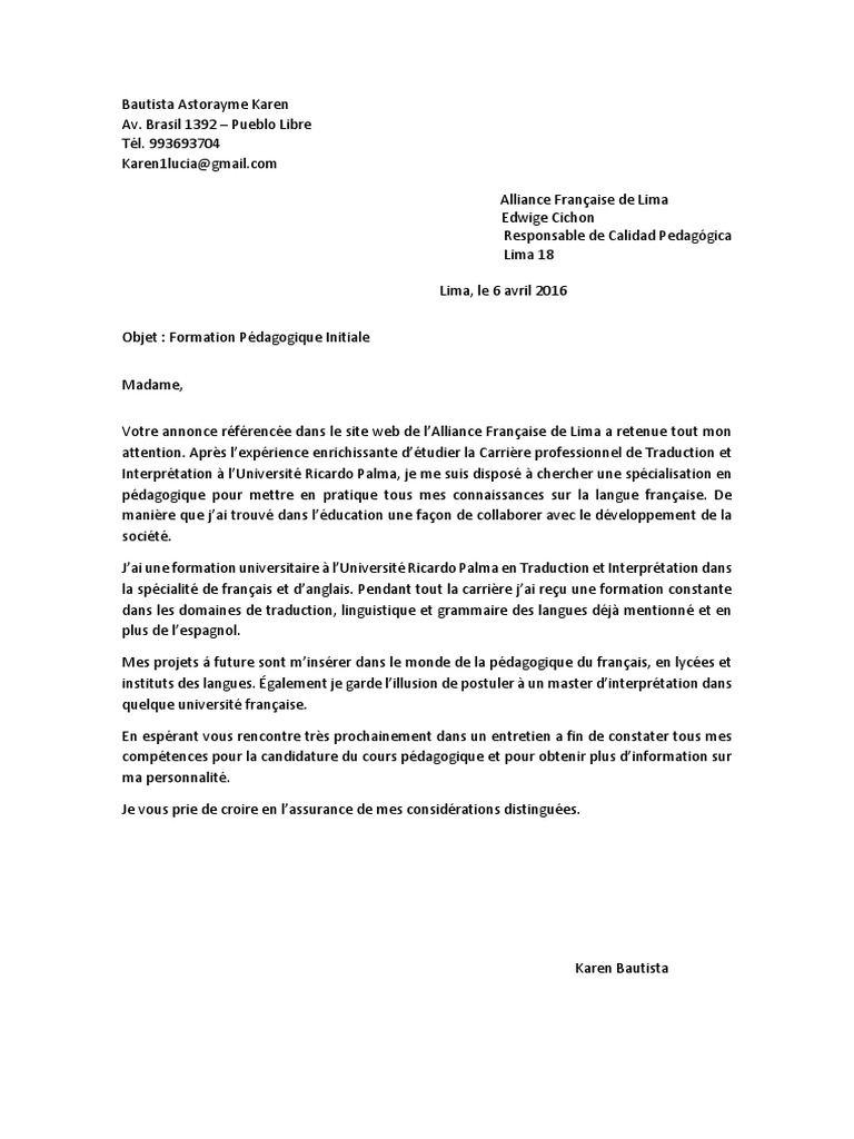4 Ecrire un contenu pertinent et utile à votre formation La lettre de motivation ne doit pas dépasser deux pages et encore je trouve que cest beaucoup en tenant compte de la présentation typique dune lettre. Dans ce guide vous trouverez. Un exemple de lettre de motivation pour un stage réussie. La lettre de motivation appuie votre candidature et vient compléter votre CV.