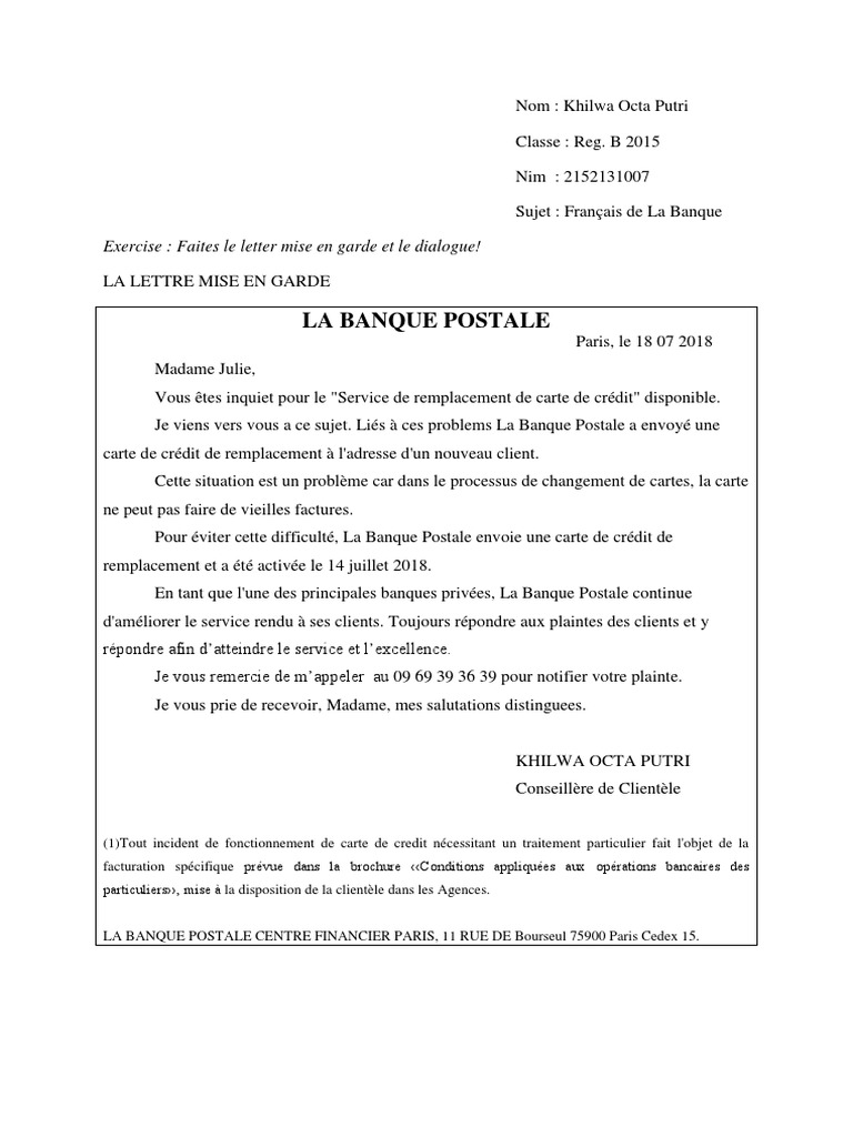 La Lettre Mise En Garde Et Le Dialogue Banques Credit