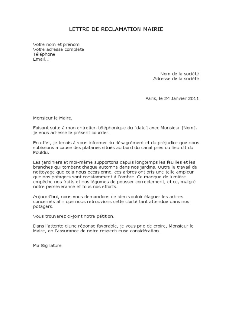 Lettre De Reclamation Mairie Nature