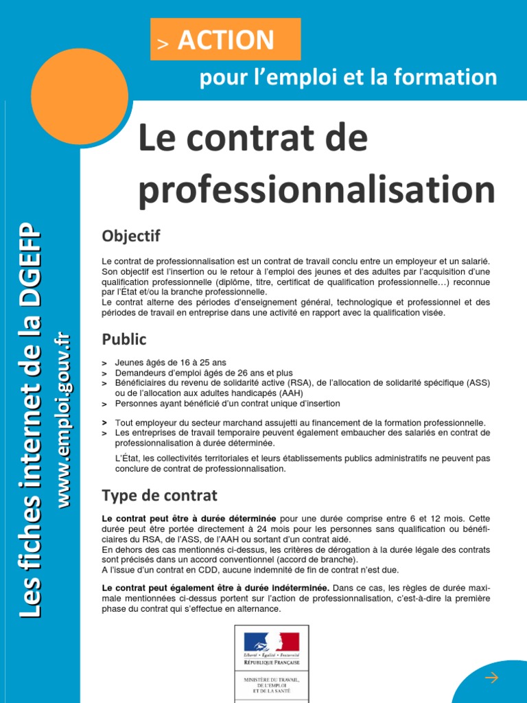 Fiche Contrat Professionnalisation Travail Emploi