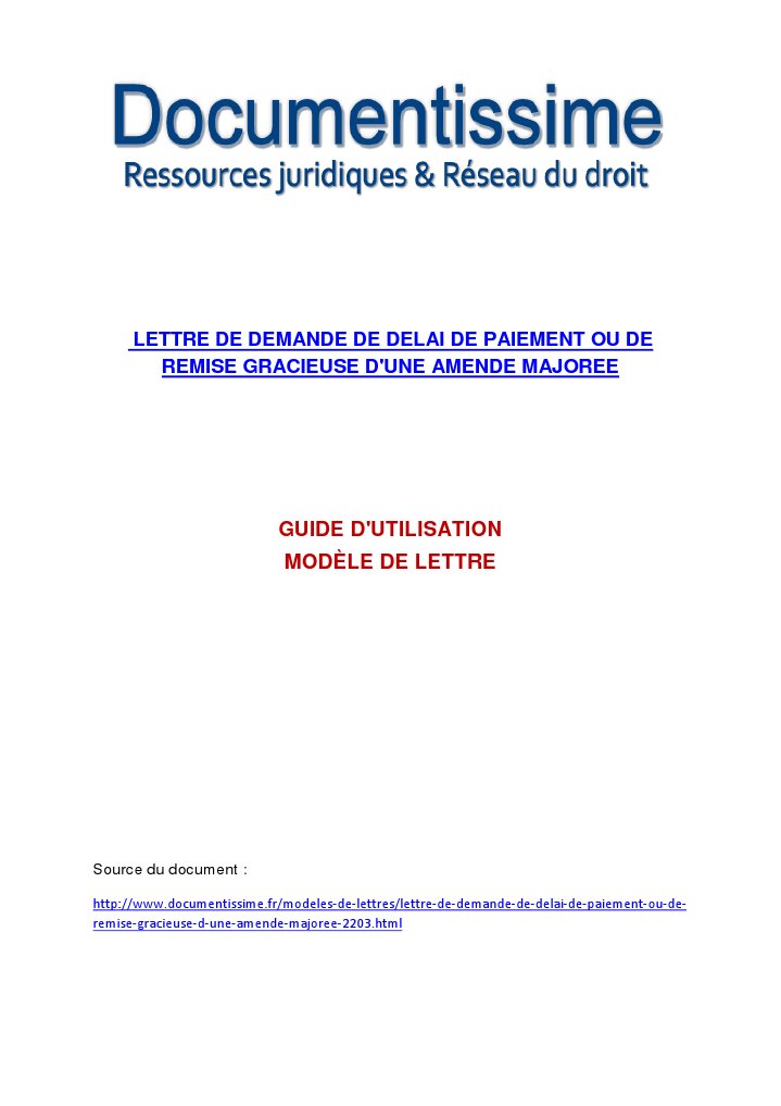 Vous souhaitez écrire une lettre à ladministration fiscale. Vous être également tenu de joindre lavis de paiement de lamende ainsi que les justificatifs de vos charges et de vos. Nous vous proposons ce courrier qui peut également servir de modèle dE-mail gratuit de demande de remise gracieuse des majorations de retardVous devez obligatoirement le personnaliser en modifiant les différentes parties en gras voire en ne reprenant.