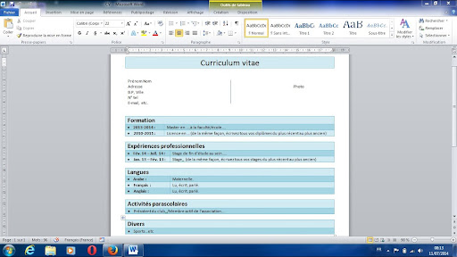 Nom prénom adresse numéro de téléphone adresse mail Comme sur tout CV vous devez faire apparaître ces informations sur votre CV Word. Les études sur le temps accordé à chaque CV peuvent décourager. CV sont un résumé de votre expérience de travail et des compétences. Ce type de CV peut être utile pour les gens qui entrent sur le marché de.